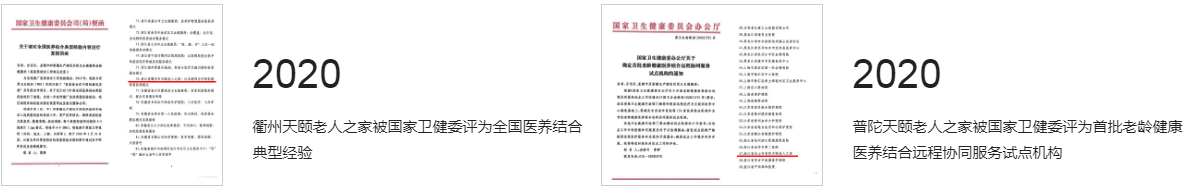 2020年9月1日健康老齡司通報確定《衢州天頤老人之家:以互聯(lián)網(wǎng)為手段創(chuàng)建智慧醫(yī)養(yǎng)模式》為“全國醫(yī)養(yǎng)結(jié)合典型經(jīng)驗”。