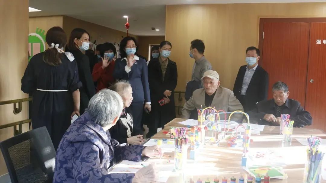 調(diào)研組一行實地參觀了康久醫(yī)院各科室、住院部,普陀天頤老人健康自理區(qū)、小單元多功能集中養(yǎng)護(hù)區(qū)、智能助浴室、棋牌室、書畫室、禮佛室等功能區(qū)域,詳細(xì)了解各項服務(wù)。
