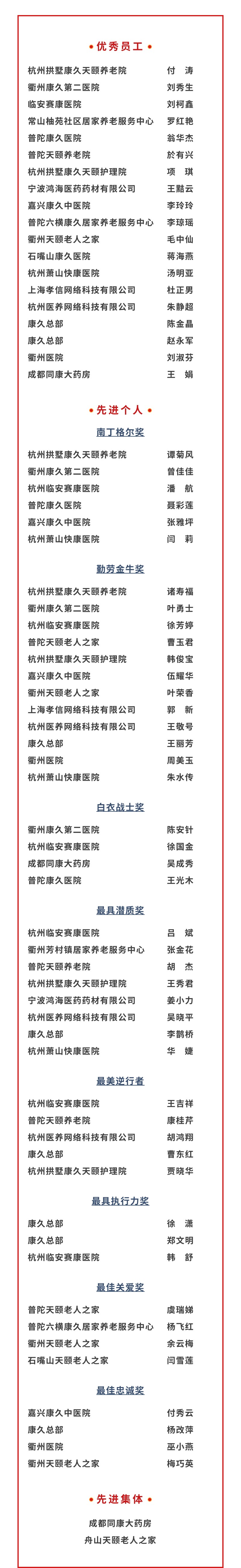 2021年,這些獲獎員工在各自崗位上兢兢業(yè)業(yè),努力奉獻,為全體員工樹立了榜樣,也對集團營收及利潤的持續(xù)增長提供了有力的支撐,讓康久集團在康養(yǎng)產(chǎn)業(yè)的創(chuàng)新生命力更加強大。
