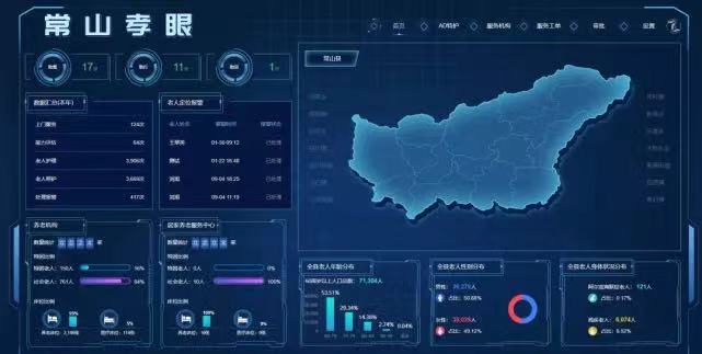 在常山縣智慧養(yǎng)老指揮中心,通過中心大屏幕可以看到,屏幕左下方實(shí)時(shí)循環(huán)播放著養(yǎng)老機(jī)構(gòu)及居家養(yǎng)老服務(wù)中心資金、項(xiàng)目等各方面的運(yùn)行狀況;屏幕中間,老人定位報(bào)警、助餐、助行、助浴等信息隨時(shí)更新著;屏幕正下方,老人年齡、性別和身體狀況等情況一目了然……通過“常山孝眼”,各養(yǎng)老機(jī)構(gòu)的運(yùn)行情況得到了有效監(jiān)管。