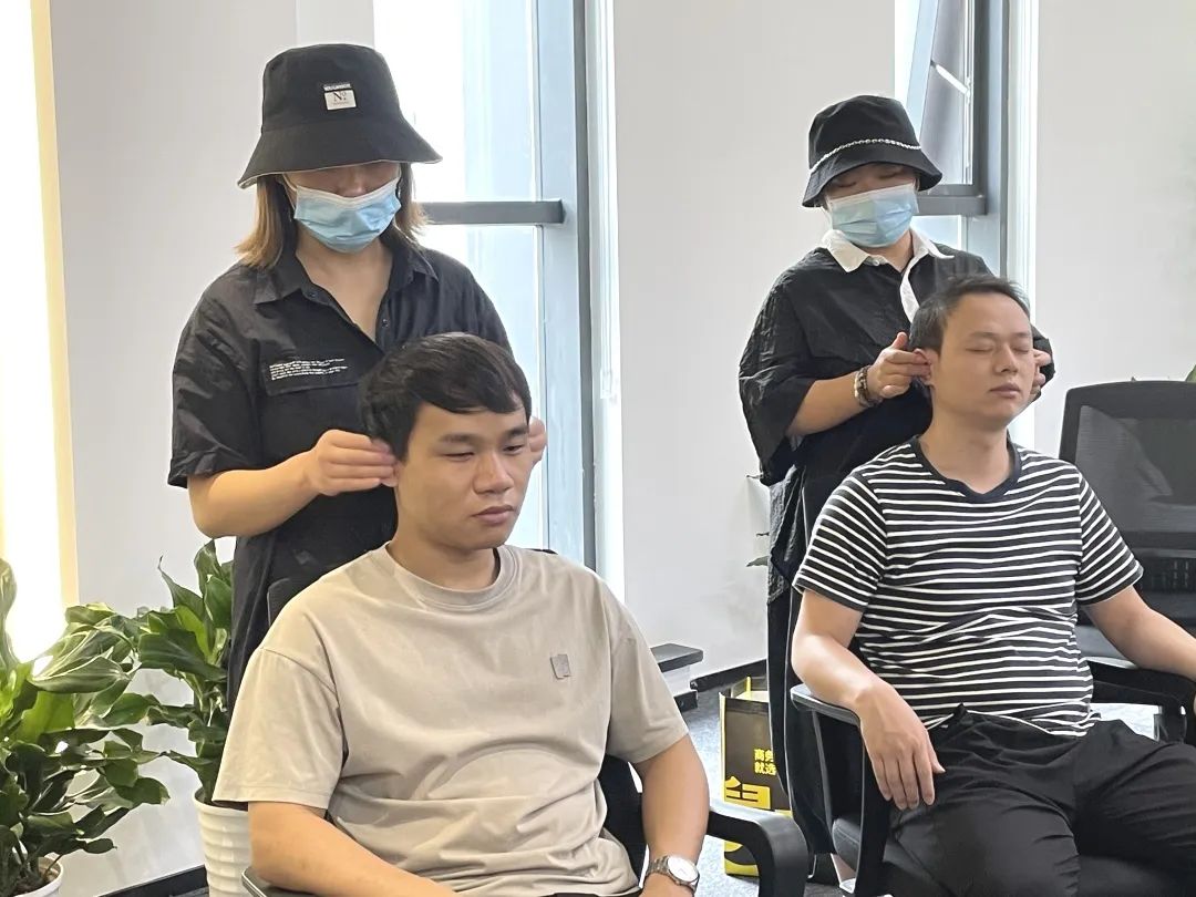 李東飛老師在檢測中發(fā)現(xiàn),不少年輕員工存在睡眠障礙問題。他表示,耳穴貼壓對(duì)于改善睡眠障礙,提高睡眠質(zhì)量效果非常顯著。另外,由于伏案工作、長時(shí)間低頭看手機(jī)等原因,肩頸酸痛也是本次檢測中發(fā)現(xiàn)的最常見的問題之一。對(duì)此,李東飛老師建議大家不要長時(shí)間低頭,要切實(shí)提高我保健的意識(shí)。