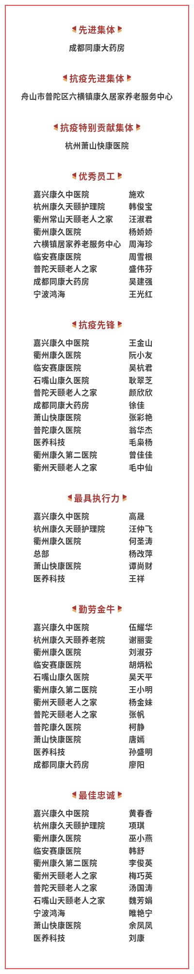 1月17日,康久集團(tuán)在杭州總部隆重召開(kāi)2022年度總結(jié)表彰大會(huì),通過(guò)總結(jié)工作、表彰先進(jìn)、展望未來(lái),激勵(lì)和動(dòng)員集團(tuán)上下進(jìn)一步堅(jiān)定信心、扎實(shí)工作,推動(dòng)各項(xiàng)事業(yè)取得新成效、再上新臺(tái)階。康久集團(tuán)董事長(zhǎng)耿海波、高級(jí)副總裁章輝、高級(jí)副總裁史健、高級(jí)副總裁莫麗萍、高級(jí)副總裁呂敏、高級(jí)副總裁楊智猛、副總裁朱惠民、副總裁汪堅(jiān)正、副總裁馮偉琴等領(lǐng)導(dǎo)出席會(huì)議,旗下各養(yǎng)老機(jī)構(gòu)和醫(yī)療機(jī)構(gòu)同步進(jìn)行視頻連線(xiàn),并以直播的形式與員工互動(dòng)。