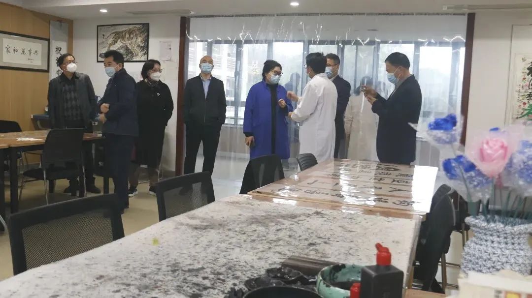 調(diào)研組一行通過樓層連廊,參觀了書畫室,即老年大學(xué)“康久學(xué)院”線下活動場地。
