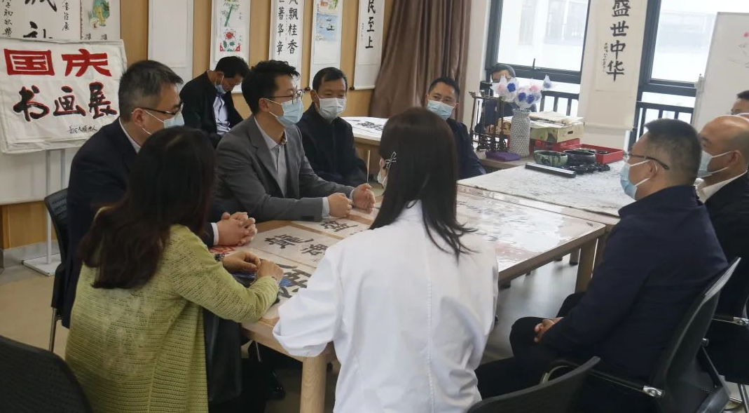 調(diào)研組一行實(shí)地參觀了康久醫(yī)院各科室、住院部,普陀天頤老人健康自理區(qū)、小單元多功能集中養(yǎng)護(hù)區(qū)、智能助浴室、棋牌室、書(shū)畫(huà)室、禮佛室等功能區(qū)域。