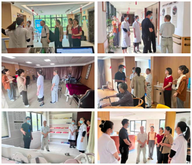 工學(xué)院院領(lǐng)導(dǎo)一行實地參觀了康久醫(yī)院各科室、住院部、普陀天頤老人之家健康自理區(qū)、小單元多功能集中養(yǎng)護區(qū)、智能助浴室、棋牌室、老人能力評估室等功能區(qū)域。