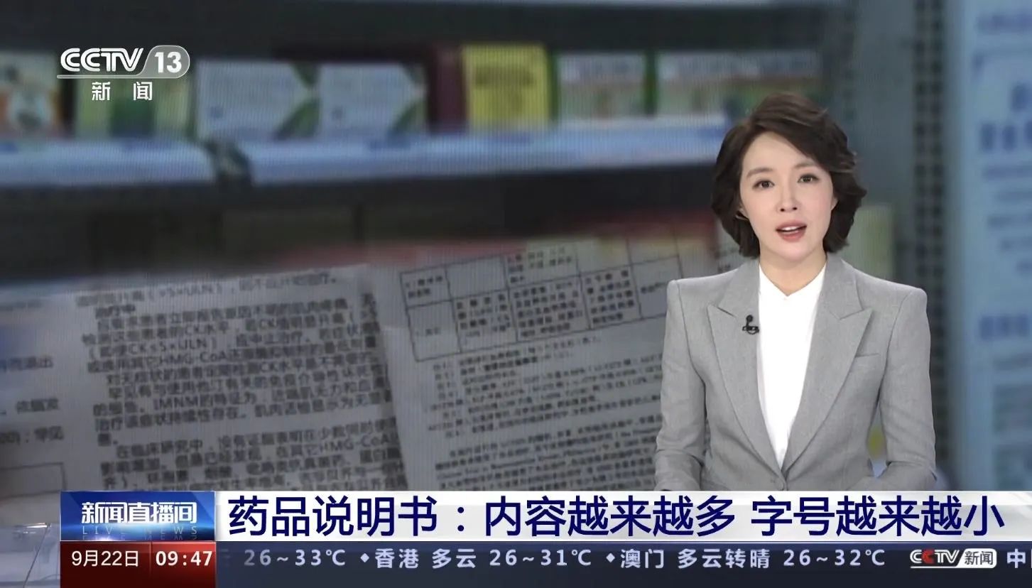 9月22日,央視新聞頻道(CCTV-13)《新聞直播間》欄目重點(diǎn)關(guān)注藥品說明書的“內(nèi)容多”和“字號小”問題??稻眉瘓F(tuán)成都同康大藥房執(zhí)業(yè)藥師王娟登上央視,手把手教學(xué)如何看藥品說明書。